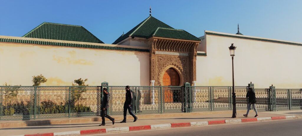 Vozač me dovezao do mauzoleja Moulay Ismaila i dok čekamo lokalnog vodiča uputio me na nekoliko trgovina lokalnim rukotvorinama u blizini (uglavnom metalnih rukotvorina s jako visokim cijenama) te na razgled mauzoleja izvana. Preko puta mazuoleja nalazi se današnja kraljevska palača i kraljevski golf tereni koji nisu otvoreni za javnost kao niti bilo koja druga građevina povezana s marokanskom kraljeveskom obitelji.